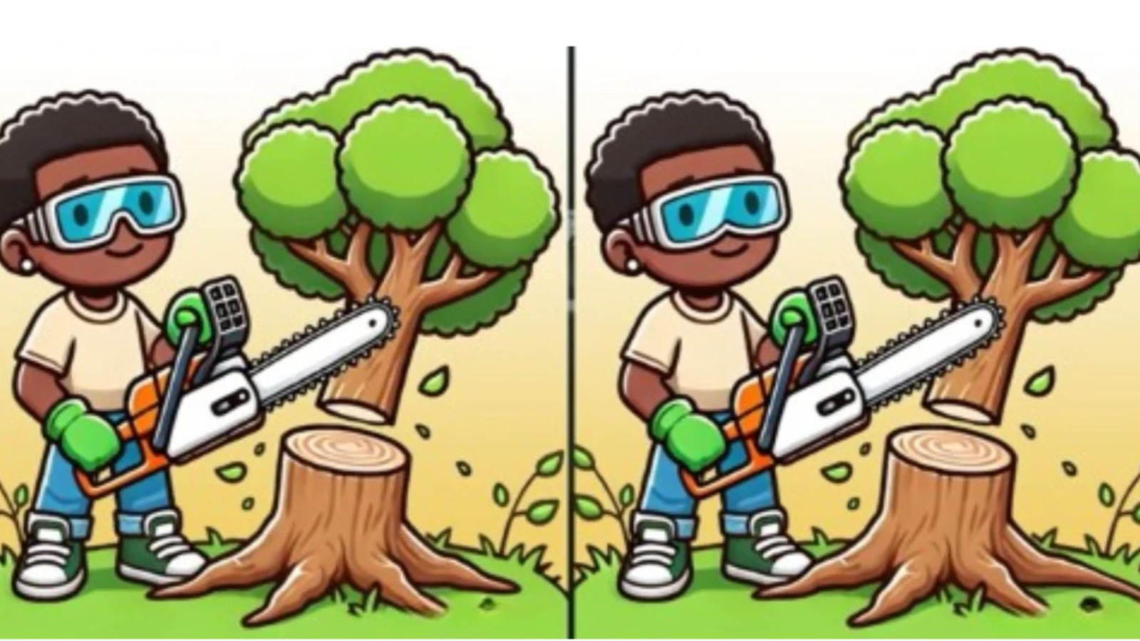 Ağacın dallarına, köklerine ve adamın taktığı koruyucu gözlüğe dikkat edenler zorlanmadan 3 farkı bulmayı başarıyor.
