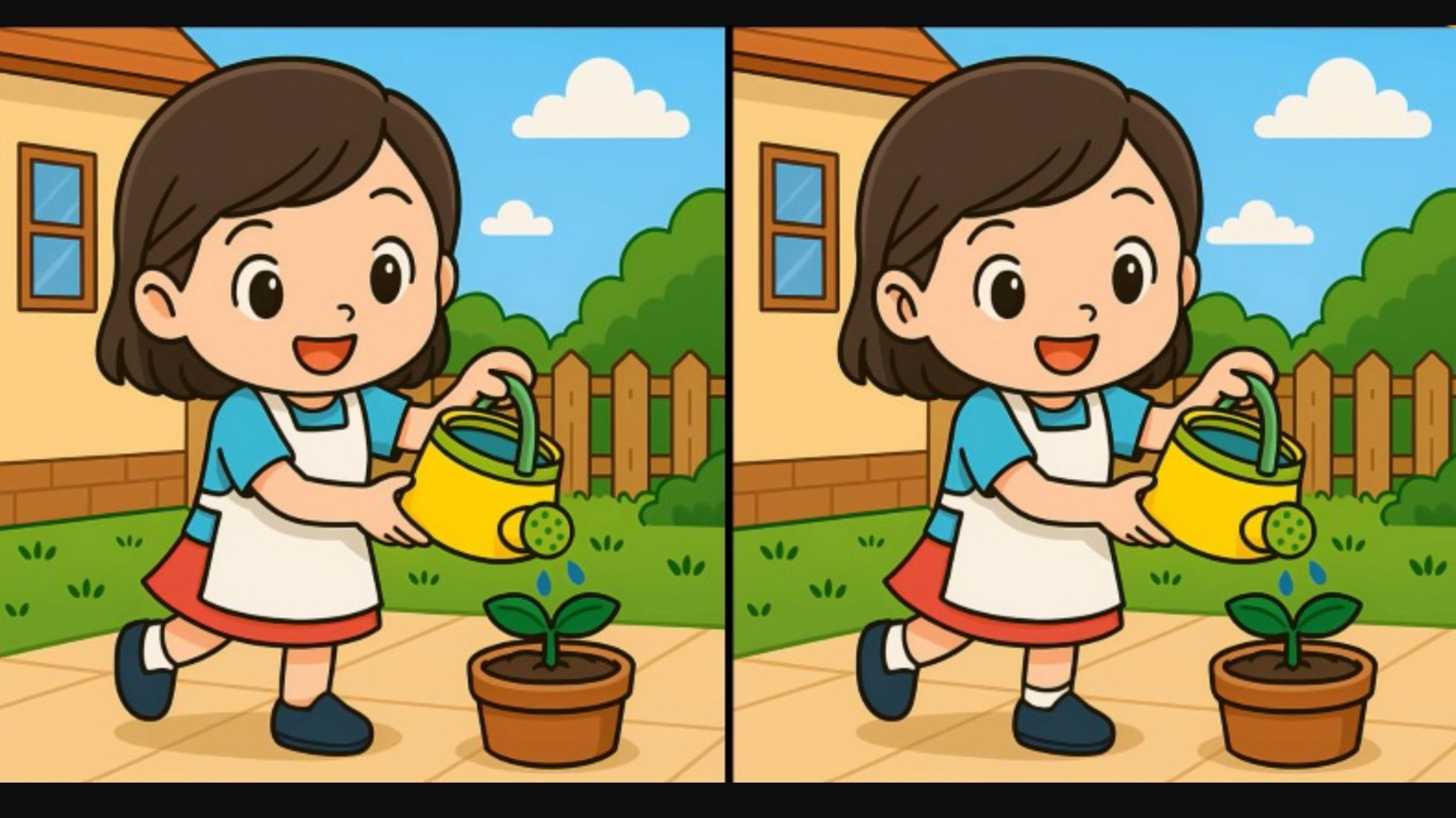 Bahçesindeki çiçeği sulayan iki kız arasındaki 3 farkı sadece yüksek IQ’su olanlar 12 saniyede buluyor