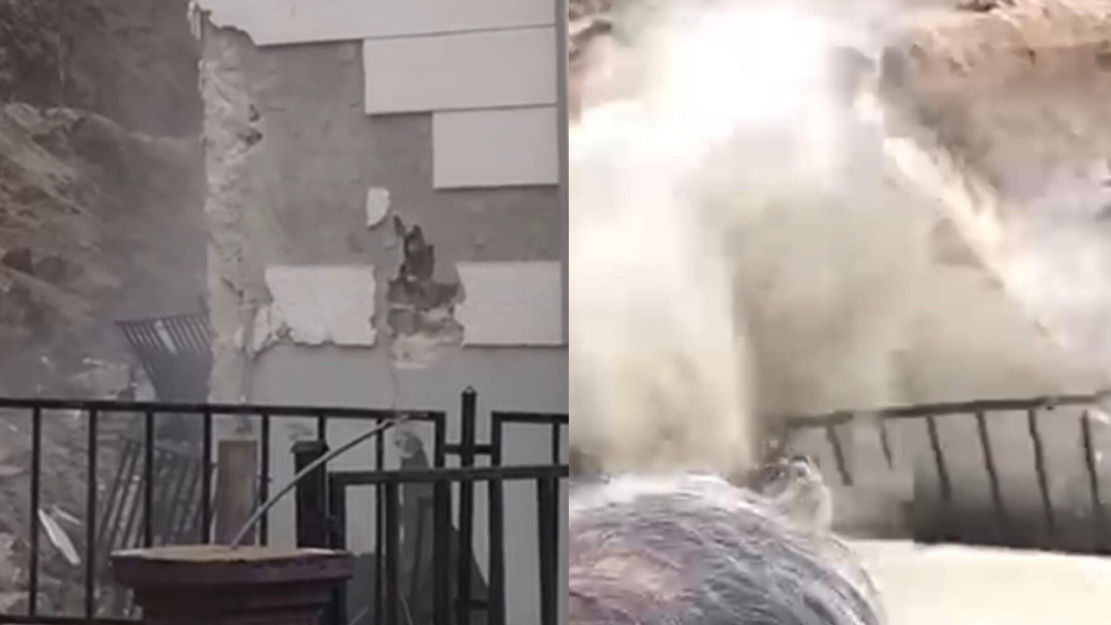 Meteoroloji Genel Müdürlüğü’nün sarı kodlu uyarısının ardından Şanlıurfa’da etkili olan sağanak yağış hayatı olumsuz etkiledi. Yağışın etkisiyle hasar alan bir binanın istinat duvarı çöktü. Paniğe neden olan olay anı cep telefonu kamerasıyla saniye saniye kaydedildi.